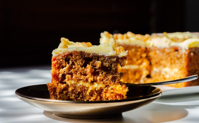 Zoom sur la carotte: Carrot cake- Glaçage pecan-coco -végétal gluten léger petit épeautre ( 7%)